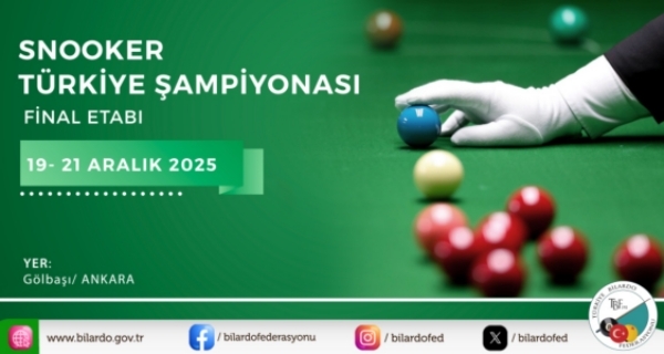 2025 Türkiye Snooker Şampiyonası Final Etabı 19-20-21 Aralık 2025 Tarihleri arasında Gölbaşı/ Ankara'da yapılacaktır.