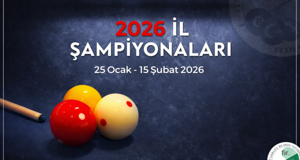 BAŞVURULAR: Turnuva başvuruları internet üzerinden http://ilturnuva.bilardo.gov.tr adresinden yapılacaktır. Başvurular tüm iller için 15.01.2026 tarihinde başlayacak ve İl şampiyonası başlangıç tarihinden 2 gün önce saat 20:00 da sona erecektir. Örnek: 28 Ocak 2026 tarihinde başlayacak il şampiyonası başvuruları 26 Ocak 2026 saat 20:00 da sona erecektir. Başvuru tarihleri bittikten sonra gelen başvurular, başvuru sıralarına göre rezerve sporcu olarak turnuvaya dahil olabilirler..