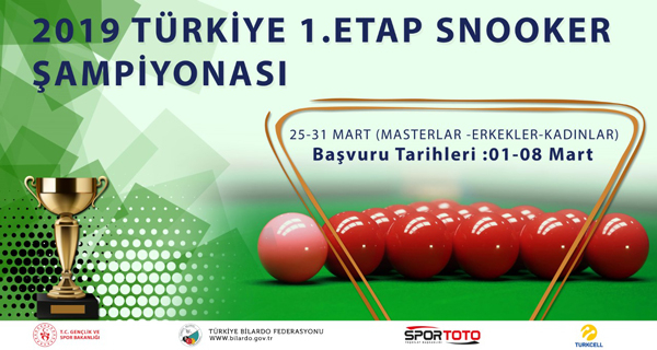 25 - 31 Mart 2019 tarihleri arasında Türkiye Snooker Şampiyonası düzenlenecektir.