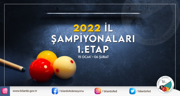 BAŞVURULAR: Turnuva başvuruları internet üzerinden http://ilturnuva.bilardo.gov.tr adresinden yapılacaktır. Başvurular tüm iller için 10 Ocak 2022 tarihinde başlayacak ve İl şampiyonası başlangıç tarihinden 2 gün önce saat 23.59 da sona erecektir. Örnek: 18 Ocak 2022 tarihinde başlayacak il şampiyonası başvuruları 15 Ocak 2022 saat 23.59 da sona erecektir. Başvuru tarihleri bittikten sonra hiçbir başvuru kabul edilmeyecektir.
