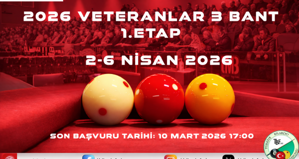Federasyonumuzun faaliyet programında yer alan 2026 Veteranlar 3 Bant Türkiye Şampiyonası 1.Etabı 2-6 Nisan 2026 tarihleri arasında Ankara'da yapılacaktır. Katılım ücreti 600,00TL olarak başvuru esnasında ödenecektir. Mazeret nedeniyle kayıt iptali yapılması durumunda ücret iadesi yapılmamaktadır.