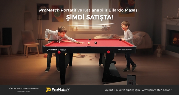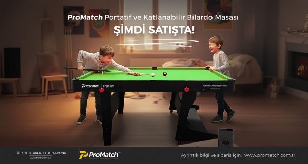 Bilardo sporunun daha geniş kitlelere ulaşması, sevilmesi ve özellikle gençlerimizin sanal dünyadan uzaklaşıp gerçek bir sporla tanışmaları amacıyla tasarlanan ProMatch Portatif Bilardo Masaları, bugün itibarıyla satışa sunuldu.