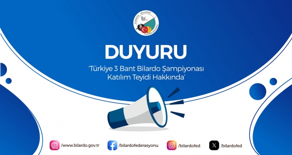 Türkiye 3 Bant Bilardo Şampiyonası Katılım Teyidi Hakkında